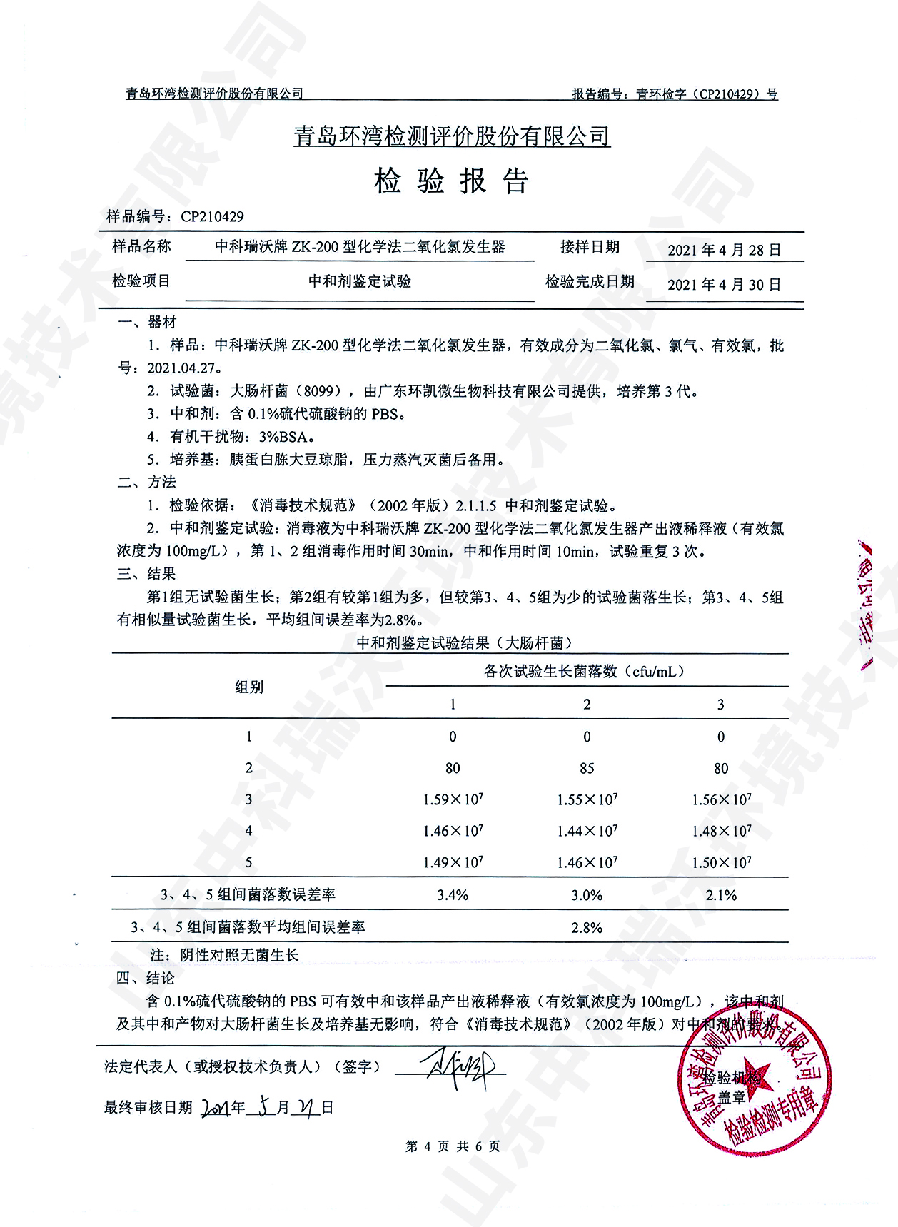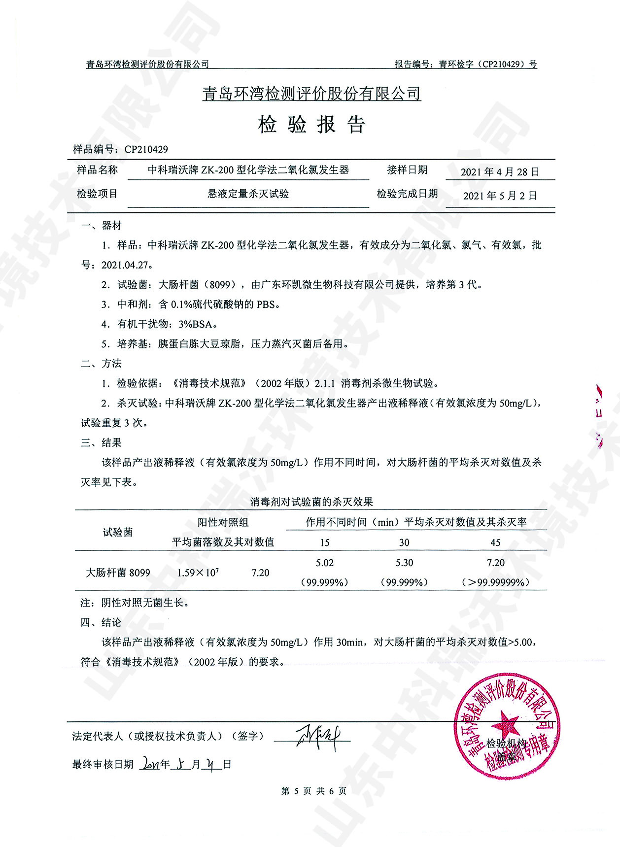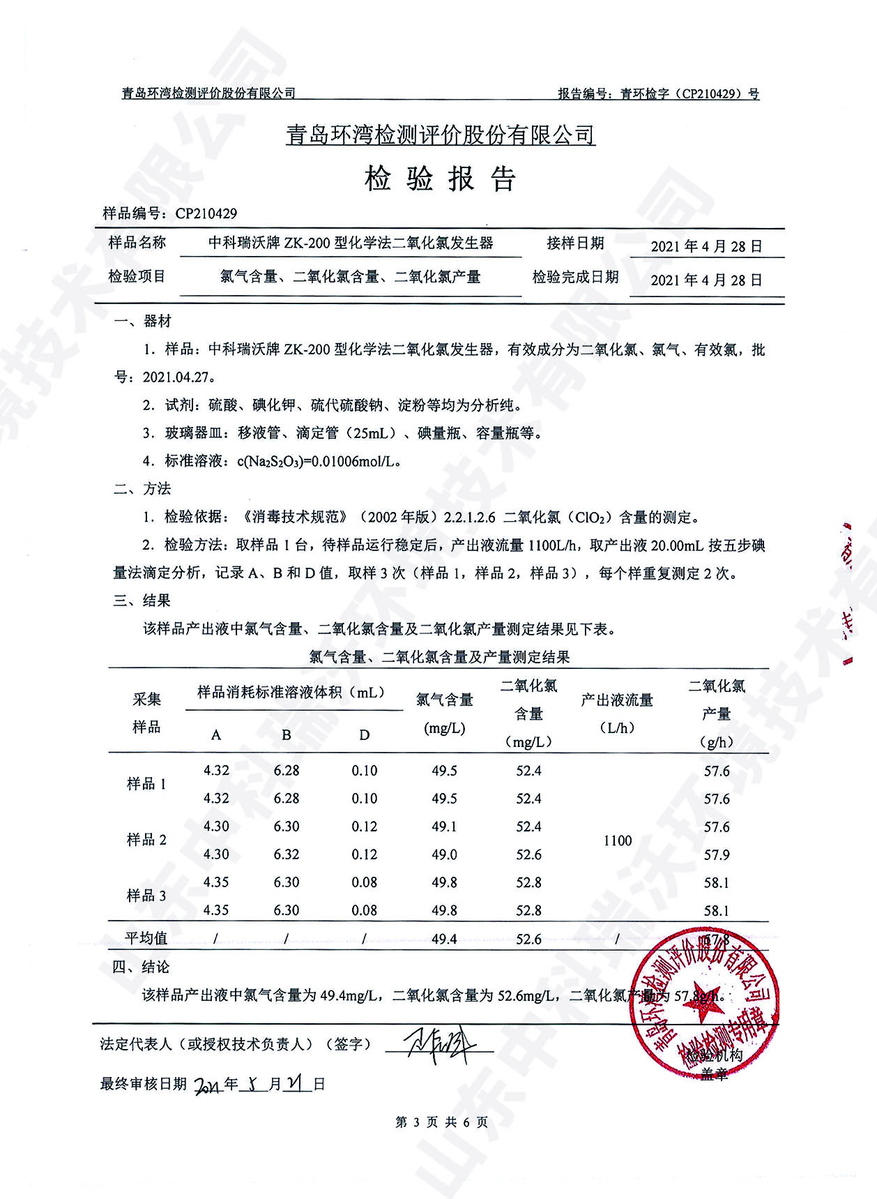醫(yī)療污水處理設(shè)備檢測(cè)報(bào)告~二氧化氯消毒