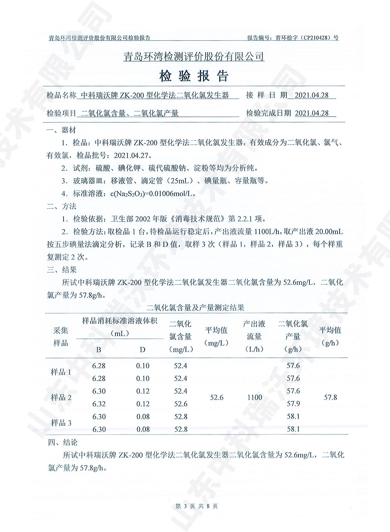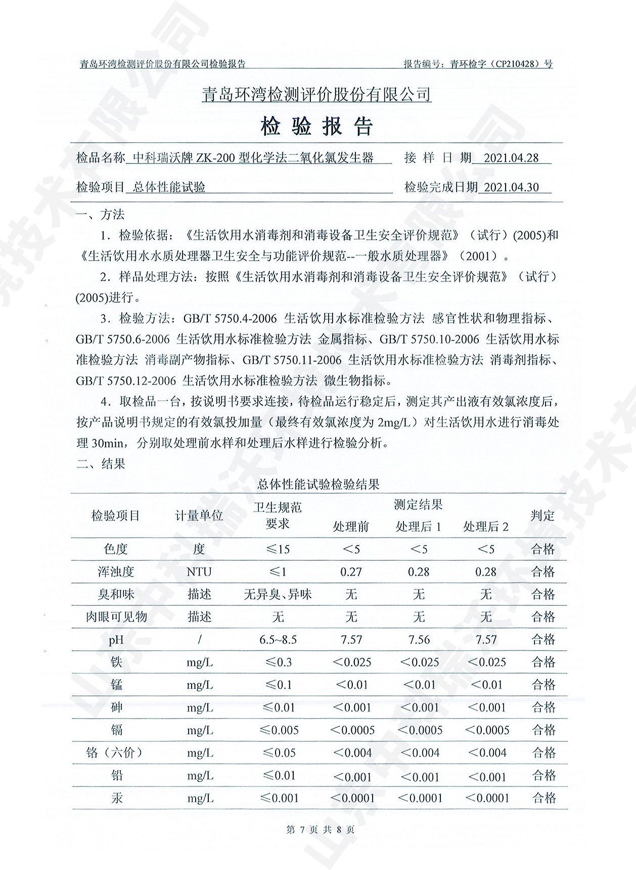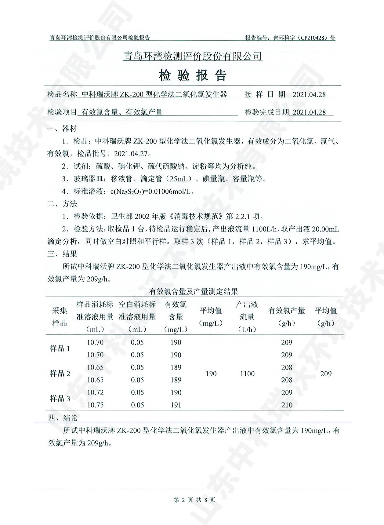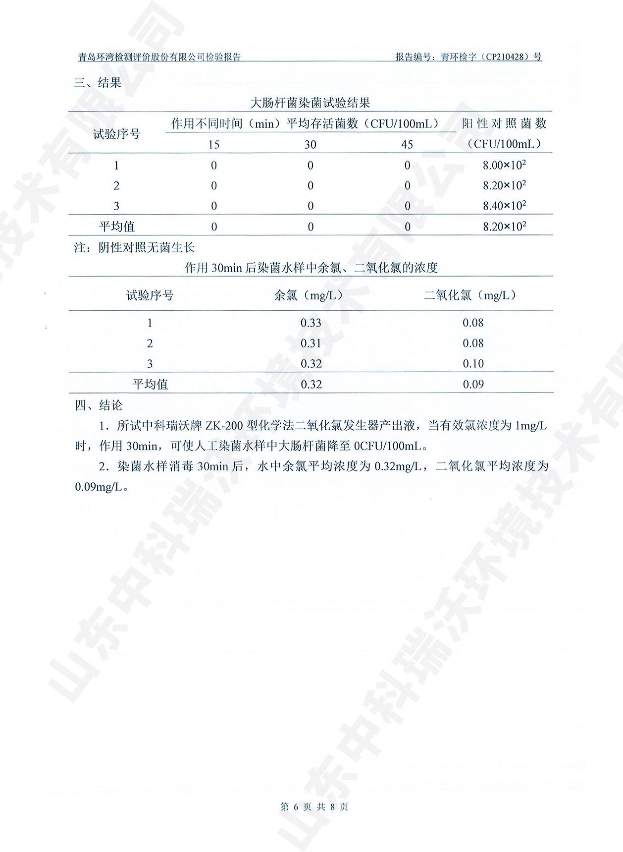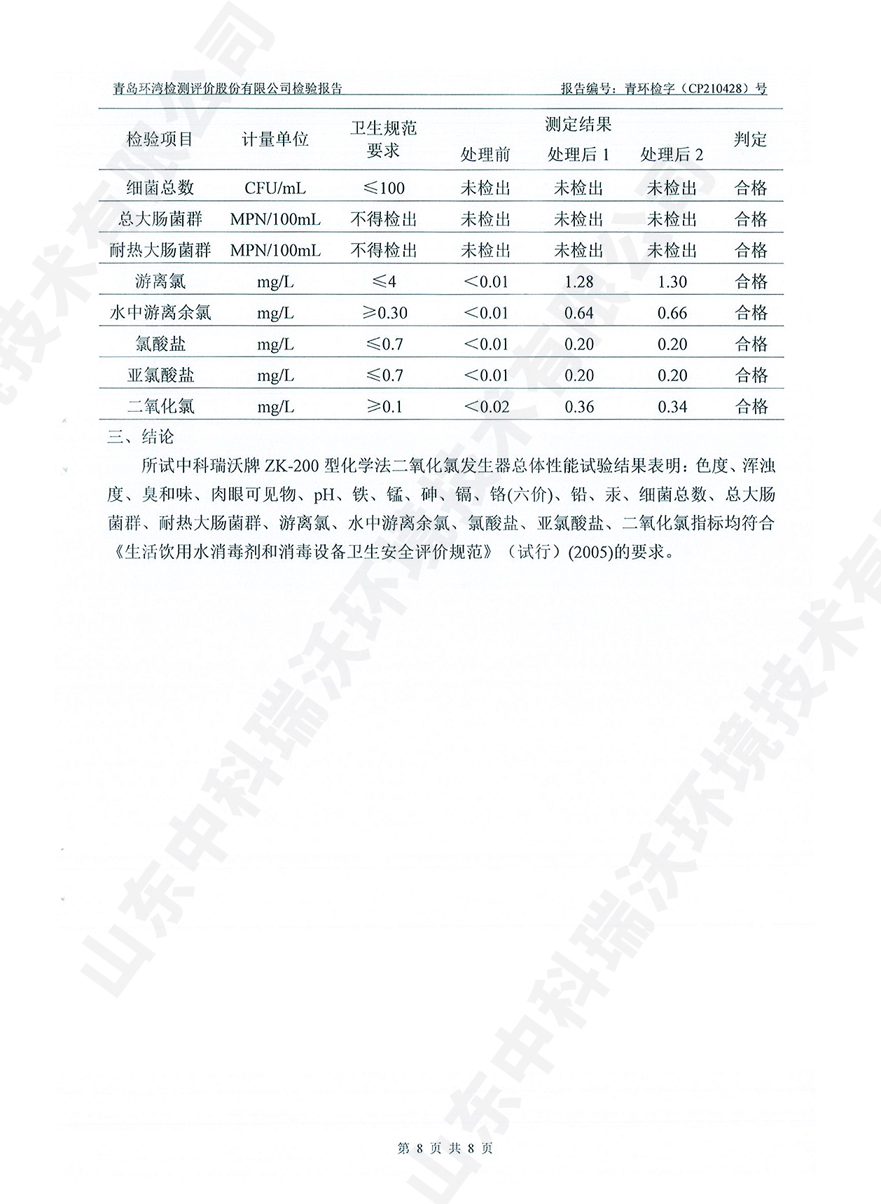 飲水消毒設備檢測報告~二氧化氯消毒